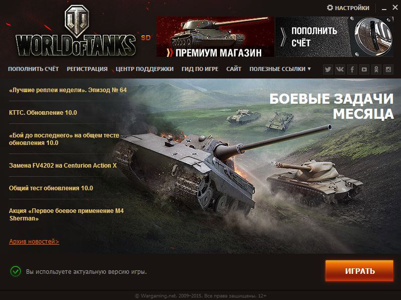 Если вы нажмёте на кнопку Играть, то запустится файл клиента игры (WorldOfTanks.exe), окно которого выглядит так: