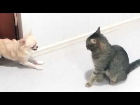 Будьте уважительны! Чихуахуа приходит на помощь, прерывает нежелательный кошачий роман, как джентльмен