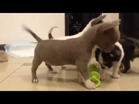 Еще совсем немного и собака уже похожа сама на себя, приобретает четкие черты зауженной мордочки и яблокообразной головы, ушки становится еще больше, а глаза светятся здоровым блеском. Самое время начинать прикармливать щенка. Обычно заводчики в питомнике или бывшие хозяева делают это, когда щенку исполняется 3 недели от роду.