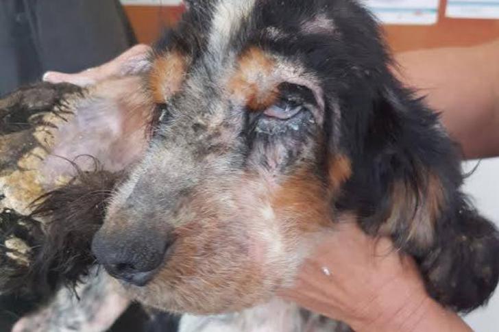 Чесоточный клещ предпочитает такие места на теле собаки, где меньше всего волосков, например, ушные раковины, область живота, локтей.