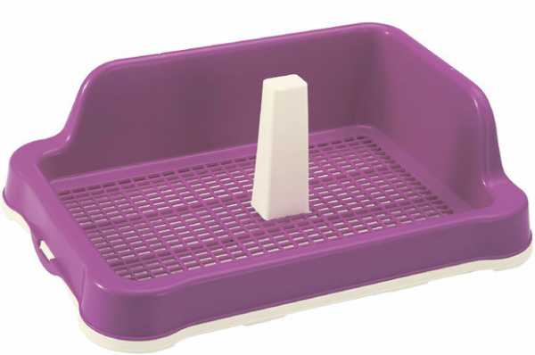 Лоток для собак мелких пород может быть небольшим, с низкими бортиками и без столбика. Маленьким песикам подойдет даже кошачий лоток. Под сетку нужно будет подложить специальную впитывающую пеленку, особенно если вас целый день нет дома.- Более крупным породам и лоток нужен побольше и повыше, чтобы животное не чувствовало себя в нем стесненно.