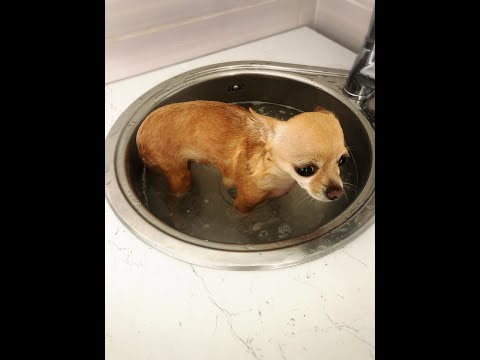 Итак, как купать чихуахуа — налейте в ванную воды, температура её не должна превышать 39 градусов, но и быть меньше 37 тоже. Старайтесь, чтобы напор воды не пугал маленькую проказницу, а то она забьется в угол ещё до того, как вы соберетесь её купать.