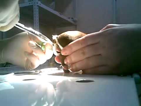 - Животных от месячного возраста надежно фиксируют на хирургическом столе с обязательной фиксацией ротовой полости;