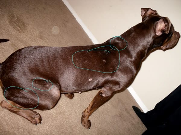 На очагах начинает расти шерсть. Для повышения тонуса, стимуляции роста волос можно дополнительно проколоть собаку раствором Катозал.
