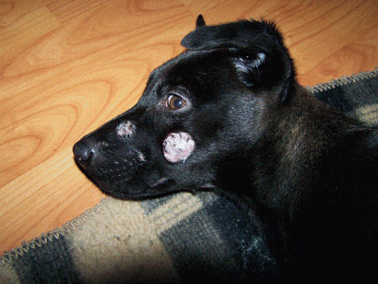 У собак с сильным иммунитетом дерматофитоз развивается скрыто: частично обламывается волос, кожа почти не меняется.