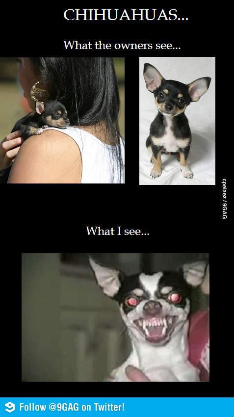 «Если у вас есть чихуахуа, вы, вероятно, понимаете, о чем я говорю. Это буквально мем чихуахуа, который описывает их как на 50% ненавидящих и на 50% дрожащих. Если вы уже заинтригованы и в ужасе от того, как звучит это животное, просто подождите. ….есть больше.»