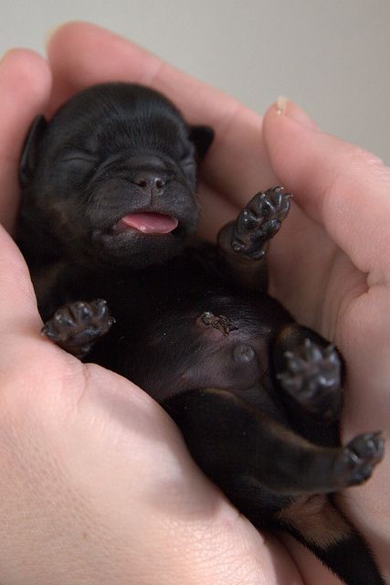 При рождении глаза у щенков закрыты, поэтому они не видят. При этом щенок будет прокладывать себе путь к матери и другим щенкам из его помета с помощью обоняния и осязания в поисках тепла, безопасности и питания. Сразу после рождения большую часть времени щенки будут тратить на сон.