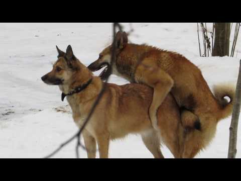 Если сука не подпускает к себе кобеля, нервничает, лает и набрасывается, то необходимо пойти на улицу и просто погулять с ними вместе, что бы сука успокоилась и привыкла к кобелю. Подготовив к вязке суку, запускаем кобеля в комнату. Кобеля не нужно трогать руками, не подтаскивать к суке за ошейник, не брать руками за половой член. Инструктор или помощник должен подвести свое колено под живот суке, чтобы она не садилась (средним и крупным сукам) или поддерживать маленькую суку под живот рукой. Рукой нужно отвести и придерживать хвост суки, чтобы он не мешал кобелю. Кобель должен передние ноги занести на спину суки, за колено помощника. После попадания полового члена кобеля во влагалище суки, засечь время и на первый раз придержать кобеля на суке за ошейник, прижимая его телом к суке сзади, до наступления склещивания. Затем снять переднюю ногу кобеля со спины суки, чтобы собаки стояли мордой в одну сторону. Если сука не беспокоится и не пытается укусить, можно снять с суки намордник. Придерживать кобеля и суку за ошейник и не давать ей и ему садиться или ложиться на время склещивания.