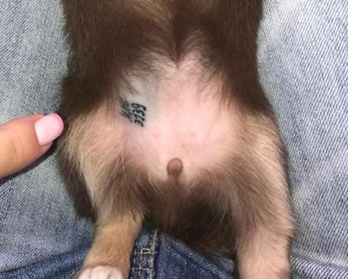 - Щенок родился с пупочной грыжей.
