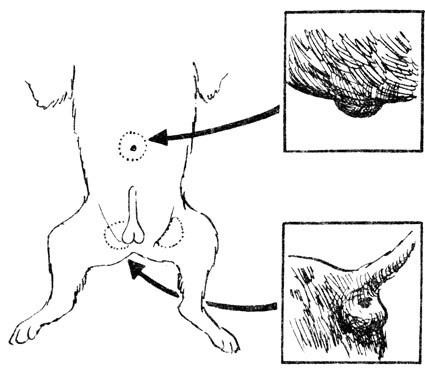 Собаки с пупочной грыжей должны быть исключены из разведения.