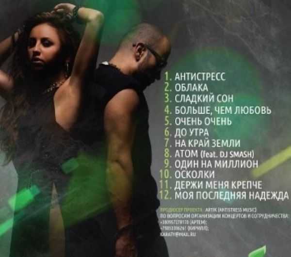1. Антистресс - 2:522. Облака - 3:393. Сладкий сон - 3:184. Больше, чем любовь - 2:545. Очень-очень - 3:006. До утра - 3:307. На край земли - 3:178. Атом — Artik & Asti, Smash - 3:479. Один на миллион — Artik & Asti, Smash - 2:5810. Осколки - 4:2911. Держи меня крепче - 3:2912. Моя последняя надежда - 3:15