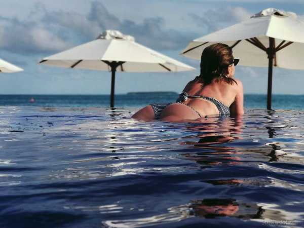 Обнаженной Караулова опубликовала фото у себя в Инстаграме, сидящей спиной к фотографу. Эту фотографию девушка сделала во время своего отдыха на Мальдивах в июле 2017 года.