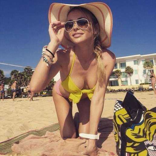 На отдыхе практически не скрывает свою киску, позволяя войти в неё глазами