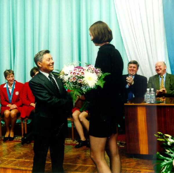 4 марта March 2011, http://www.dostup1.ru/detail/detail_24687.html Вручение пятой премии «Признание», общественной награды Челябинска, за вклад в развитие физической культуры и спорта. Вручать статуэтку Екатерине вышел министр строительства, инфраструктуры и дорожного хозяйства области Виктор Тупикин и оказался чемпионке ровно по плечо. Пристрастные наблюдатели заметили, что великолепной Гамовой было на это обстоятельство совершенно все равно, а вот министр держался как-то нервно. Presenting the fifth prize "Recognition", the Chelyabinsk public award for the contribution to the development of physical culture and sports. Victor Tupikin, the minister of construction, infrastructure and road infrastructure, handing out a statuette to Catherine, was exactly up to champion's shoulder. Biased observers noticed that magnificent Gamova was in this circumstance all the same, but the minister kept nervously.