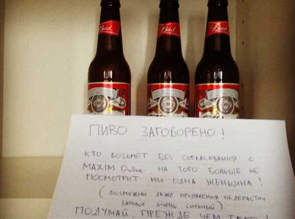 6. Летом 2011 года из редакции MAXIM Online стало таинственно и стремительно пропадать пиво. Сотрудникам пришлось предпринять экстренные меры. В результате бурных обсуждений было принято единственно верное решение: рядом с остатками пива пришлось повесить объявление с угрозами.