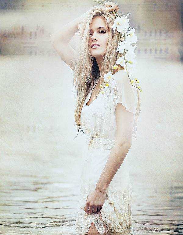 Юлия Паршута с белым цветком стоит в воде
