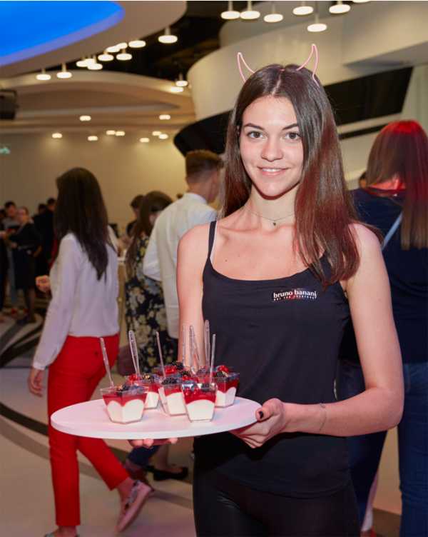 Кейтеринг был предоставлен рестораном Spettacolo под руководством шеф-повара Лоренцо Гуардино (Lorenzo Guardino). Гости освежались соками Pago, энергетическими напитками Effect, а парфюмерный бренд bruno banani угостил всех десертами.