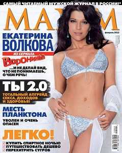 Уговорить Екатерину Волкову раздеться смог лишь один глянцевый журнал, и у него настоящее мужское имя, как вы уже догадались, я имею ввиду Maxim! Фотосессия насчитывает всего 5 кадров не считая обложки, мало, но к сожалению других реальных фотографий, на которых голая Екатерина Волкова просто не существует, ну разве что в ее личной коллекции и еще, возможно, у журнала Maxim. Очень жаль конечно, но факт остается фактом.