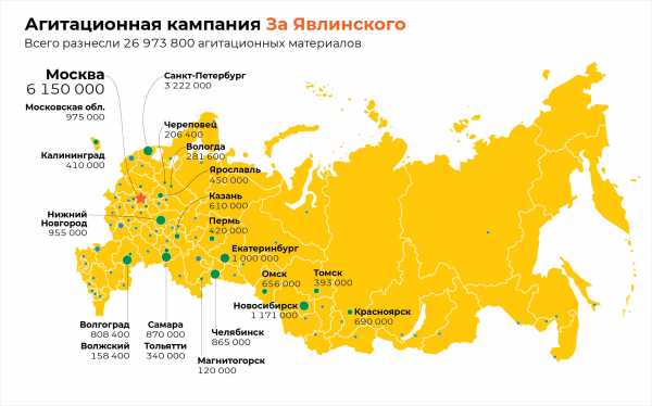 Зелёные и Москва — наша ответственность. Синие — разносили региональные отделения. Ещё было около 4 миллионов других материалов — писем, буклетов, плакатов.