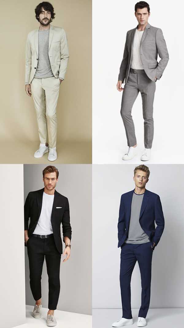 Подбирая комбинацию, важно соблюдать баланс. Например, некоторые звезды мирового масштаба, в частности Джастин Тимберлейк, носят белые кроссовки из натуральной кожи с пиджаком на двух кнопках. Но есть и менее удачные комбинации. Например, Эд Ширан надевает костюм с глянцевым отливом и галстуком с черными высокими кроссовками Nike.