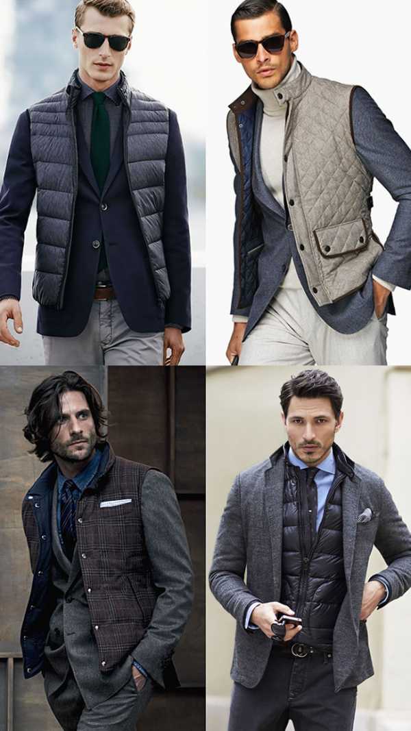 Чтобы внести изюминку в свой образ, мужчины надевают классические жилетки на футболки и кофты. Однако девушки считают такую комбинацию непривлекательной. Жилетку целесообразно надевать поверх рубашки под классический костюм.