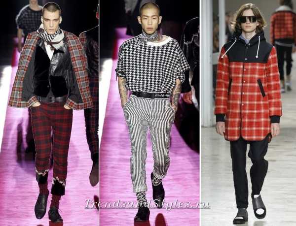 Всеми любимый принт «клетка» представлен в мужских костюмах в разнообразных вариациях. В осеннем сезоне она выступает в очень интересных решениях – жёлто-чёрном, красно-чёрном. Куртки, пальто и редингтоны демонстрирует эффектный клетчатый принт во всех модных коллекциях.