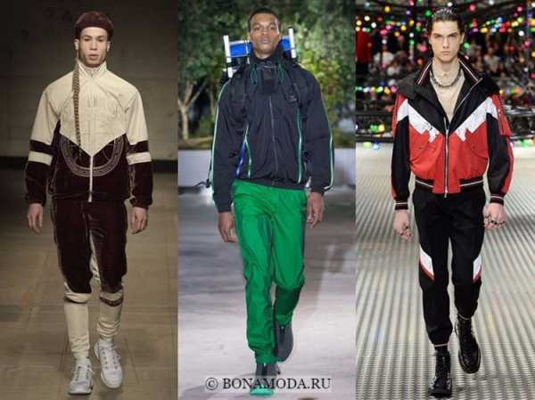 Множество образов на подиуме основаны на спортивных костюмах, похожих на те, что носили в девяностые. Другие дизайнеры делали этот стиль более аккуратным, например, сочетали базовые брюки со свитерами и худи с контрастными яркими полосками.
