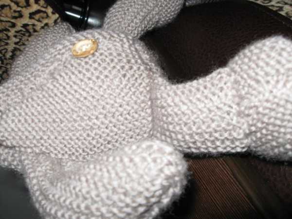Тогда няня-рукодельница решила распустить свитер. Когда она это сделала, появилось много шерсти, из которой няня намотала клубки. После она приступила к вязанию. Так, сначала возникла добрая мордашка со стоячими ушками и симпатичным коричневым носом. Потом возникло тельце, лапки и хвостик. Единственную уцелевшую пуговицу няня пришила на живот.