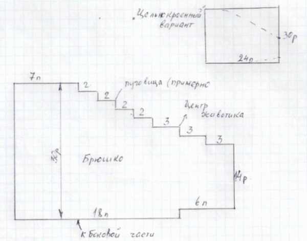 - В 23-м ряду провязываем все петли по ножке, затем набираем 10 воздушных петль и опять 23 столбика около второй ноги. Получившиеся 56 петель мы провязываем следующие 3 ряда. А в 4-м ряду убавляем, получая 50 столбиков без накида. Таким образом провязываем 4 ряда.