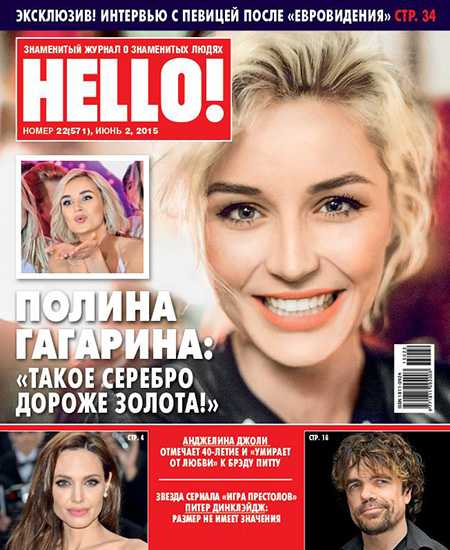Обложка №22 HELLO! c Полиной ГагаринойСразу после "Евровидения 2015", на котором Полина Гагарина заняла воторое место, уступив лишь шведу Монсу Зелмерлеву, она дала эксклюзивное интервью нашему журналу. Позднее Полина ушла из-под опеки Константина Меладзе, стала педагогом в школе и наставником в шоу "Голос".