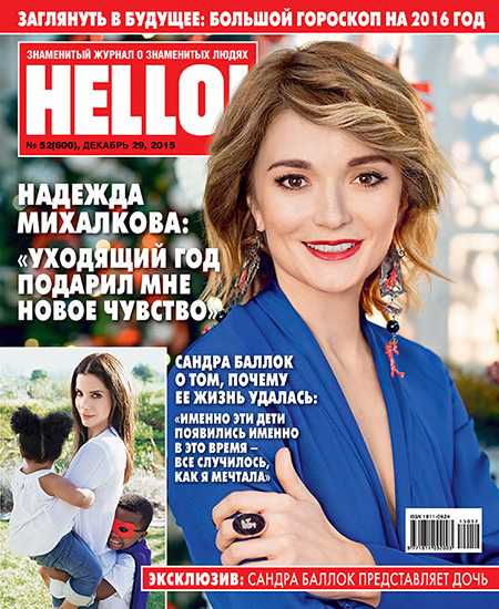 Обложка №52 HELLO! с Надеждой МихалковойГероиней последнего номера уходящего 2015-го стала Надежда Михалкова, которая рассказала о новом витке своей жизни. Интервью с актрисой, а теперь телеведущей и режиссером, появится на HELLO.RU в январские каникулы.