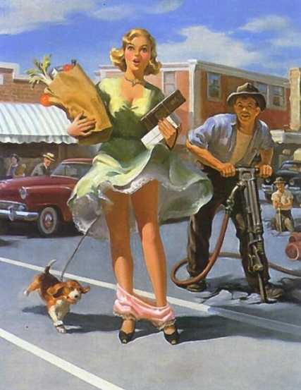 Это очень важный принцип пин-апа – повседневность. Изображение роскошной, сводящей мужчин с ума красотки в будничной обстановке и за простыми занятиями.