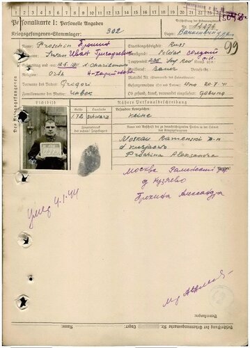 ОБД: Кураев, фото, 182-й стрелковый полк (ошибка, вероятно 182-я или 183-я стрелковая дивизия), пленен 28.7.41 Дно,
