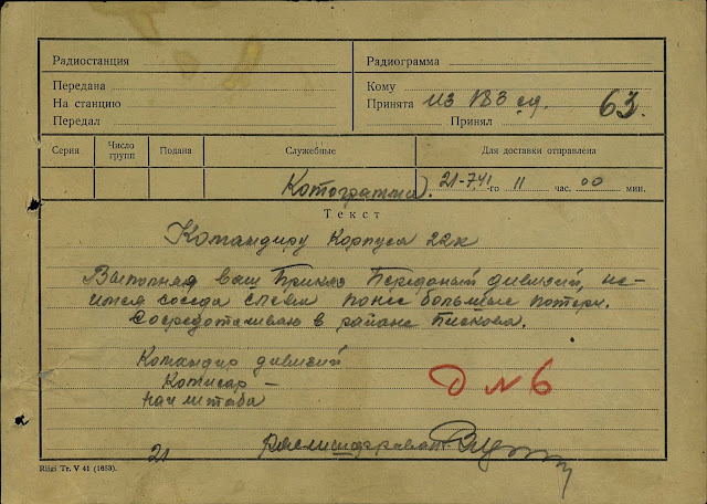 1) На основании приказа Командующего Калининским фронтом, дивизии поставлена задача к 17.30 15.01.42 сосредоточиться в район: ОКОРОКОВО, ТАЛИЦЫ, ст. МОНЧАЛОВО, МОНЧАЛОВО.