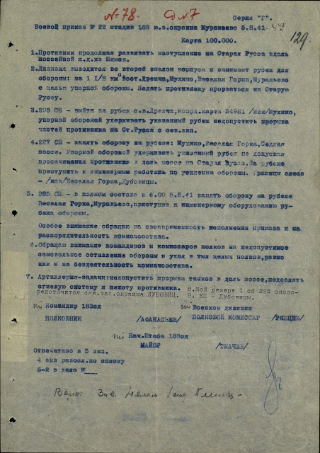 18.08.41г. дивизия получила приказ овладеть Старая Русса и, форсировав р. Ловать, за 2 дня ожесточенных боев подошла к городу, выбила немцев из вост. части города и достигла р. Полисть.