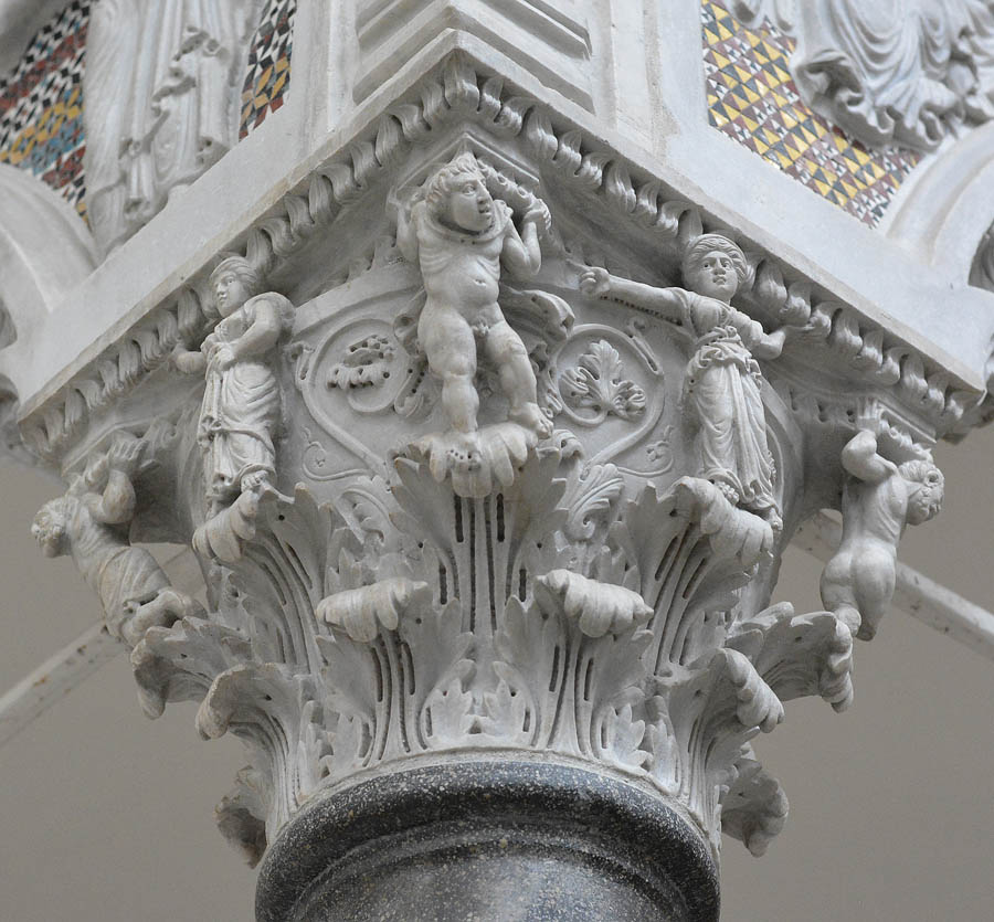 Теперь восхитительные капители. Если я не ошибаюсь, три из них с фигурами, а одна обычная.