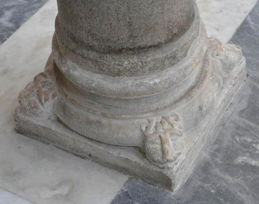 Амвон ярко выраженного константинопольского типа, но без боковых лестниц, и помещен на 4 столбика - сказываются, по, видимому, местные вкусы. В то время детали каменного храмового убранства производились в византийских мастерских при императорских каменоломнях массово, часто типовыми наборами (что доказывают находки таких наборов на затонувших кораблях), и монтировались заказчиками на месте порой по принципу конструктора LEGO.