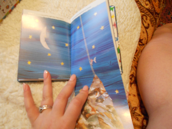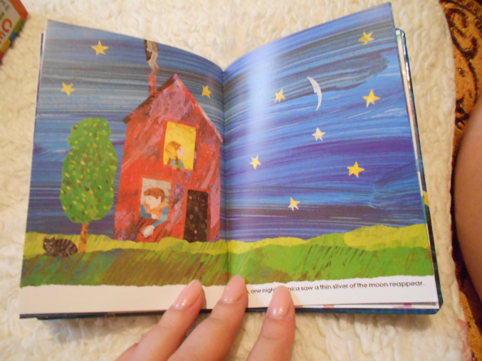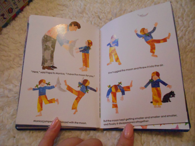 Книжка о том, что однажды маленькая Млника попросила папу достать ей с неба луну поиграть. И любящий папа отправился исполнять задание.
