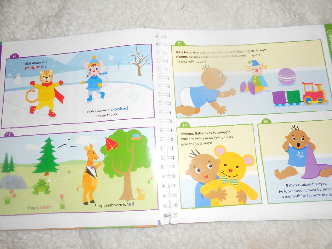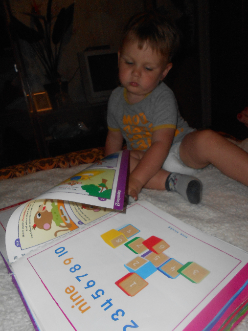 Невероятно классная книжка с яркими картинками, со стишками, абсолютно обо всем - и цифры, и фрукты, и животкные, и фигуры, да что угодно.Чувства, еда, активитиз...Единственный минус - тонкие странички на пружинке. Вследствие - отрываются.