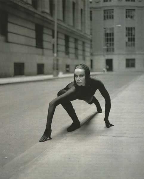 Городской человек-паук. 1994-1998. Идея и образ: Вера Лендорф. Платье: собственность Веры Лендорф. Фотограф: Андреас Хубертус Ильзе. Ручная печать на баритовой бумаге. Собрание авторов. Предоставлено Мультимедиа Арт Музеем