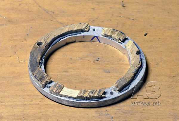 Составляющие опоры мидбасов: проставка, крепёжное кольцо (доработанное штатное) и влагозащитный козырёк
