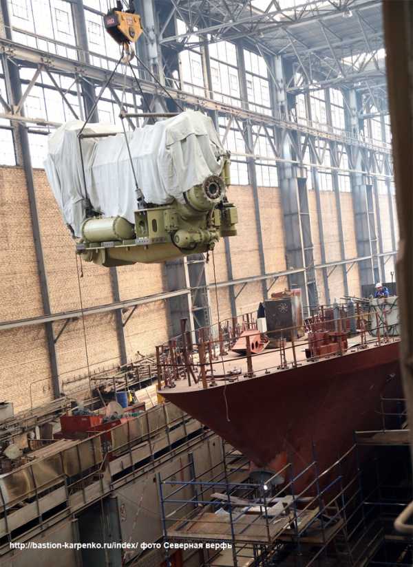 Завершена погрузка двигателей и редукторов в носовое машинное отделение корвета «Ретивый» проекта 20380. Накануне на корабль погрузили вторую пару дизель-генераторов. Через 7-10 дней судостроители выполнят погрузку главных двигателей в кормовое машинное отделение.Теперь судостроители смогут начать поэтапный предварительный монтаж дизель-генераторов, редукторов и главных двигателей. Следующий важный этап работ – установка и сварка блоков надстройки, погрузка промежуточных и упорных валов. Сейчас на корабле ведутся достроечные работы, завершен монтаж мортир и кронштейнов валовых линий, идет подготовка к монтажу гребных валов. Судостроители готовят помещения под первичную окраску.Спуск на воду корвета «Ретивый» запланирован на 2-ой квартал 2019 года. Передача корвета военным морякам должна состояться в 2020 году.Северная верфь