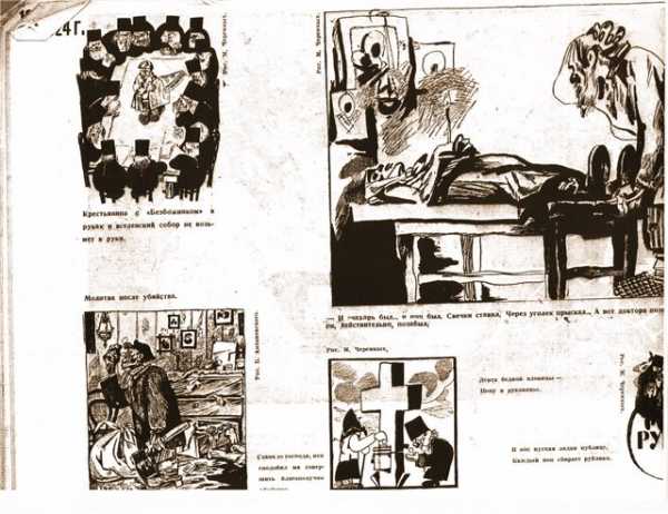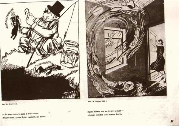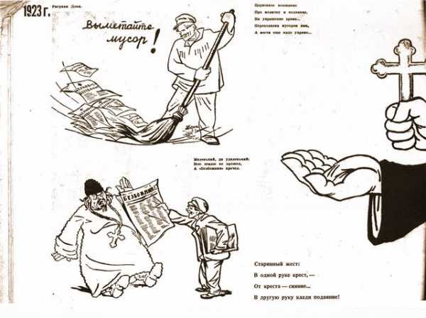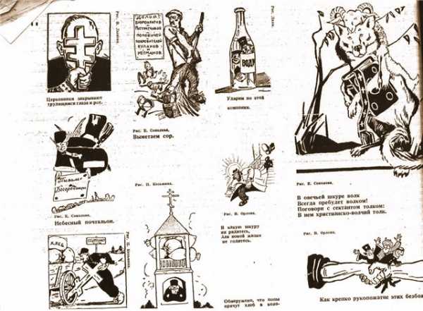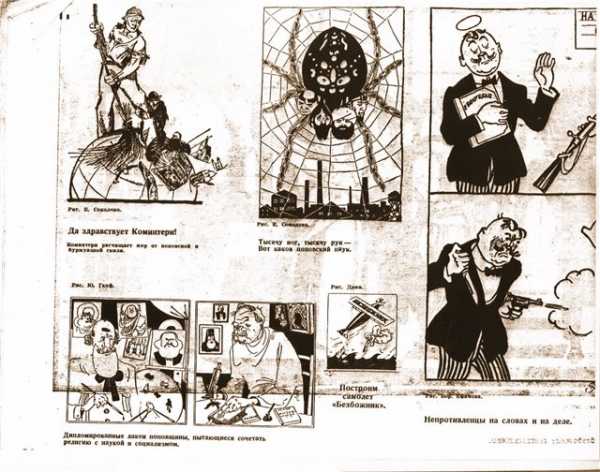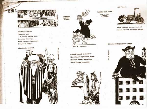 В 1927 году "Союз воинствующих безбожников" выпустил сборник антирелигиозных карикатур, посвящённый 10-летию Октябрьской революции.