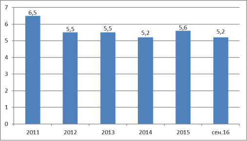 Рис. 1. Динамика уровня безработицы за 2011–2016 гг.