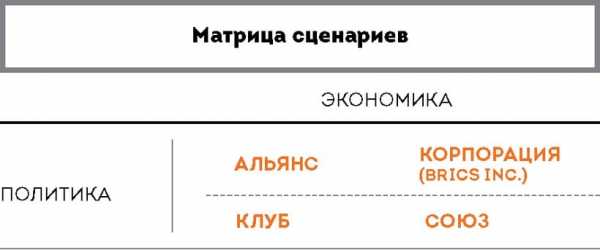 Мы понимаем, что помимо присущих ему одному внутренних вызовов БРИКС – необходимость создания новой модели межгосударственных отношений и действенной системы сдержек и противовесов такого масштаба – этот сценарий интегрирует вызовы и возможности предыдущих сценариев. Само по себе наблюдаемое развитие событий не дает никаких предпосылок для появления БРИКС в таком виде, и успешная реализация этого сценария будет зависеть от способности стран БРИКС спроектировать общее будущее.