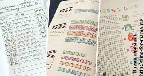 Периодически я собираю и публикую в блоге подборки идей для Bullet Journal. Вот здесь, например, я рассказывала о трекере сериалов и фильмов, полугодовом обзоре, графике недели и карте путешествий.