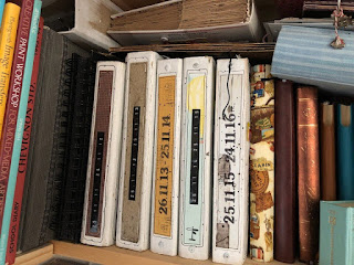 Ну и напоследок - вот так мои последние альбомы смотрятся на полке. А самые первые хранятся выше в коробке.