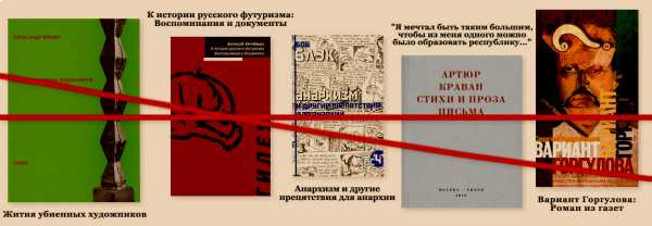 Боб Блэк – Анархизм и другие препятствия для анархииАртюр Краван – "Я мечтал быть таким большим, чтобы из меня одного можно было образовать республику…"Александр Бренер – Жития убиенных художниковАлексей Кручёных – К истории русского футуризма: Воспоминания и документыСергей Кудрявцев – Вариант Горгулова: Роман из газет