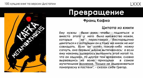 "Дистопия" провела опрос и составила список ста лучших книг, опираясь на мнение своих читателей. У вас не должно возникнуть вопроса «Что почитать?», по крайней мере, пока вы не прочтете все книги из списка. Приятного прочтения.