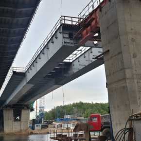 На эстакаде через ж/д Белорусского направления для движения автотранспорта организовано по 2 полосы в каждую сторону.